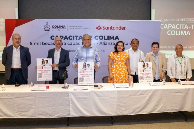 La Secretaría de Desarrollo Económico (Sedeco) del Gobierno del Estado de Colima, en alianza con Banco Santander México, lanzó el programa Capacita-Te Colima, una iniciativa que pone al alcance de la población 5 mil becas de capacitación gratuita para fortalecer las habilidades y competencias laborales de las y los colimenses.