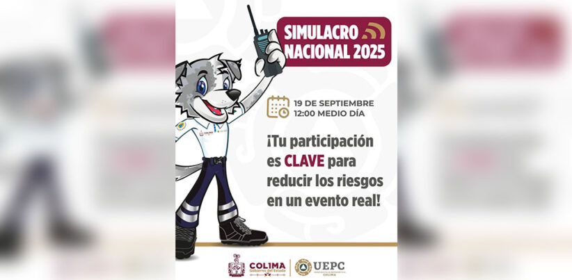 La Unidad Estatal de Protección Civil (UEPC) del Gobierno del Estado de Colima informa que la entidad participará en el Segundo Simulacro Nacional 2025, que se realizará el viernes 19 de septiembre a las 12:00 horas, que será bajo la hipótesis de un sismo magnitud 8.1 con epicentro en las costas de Michoacán, a trece kilómetros de profundidad.