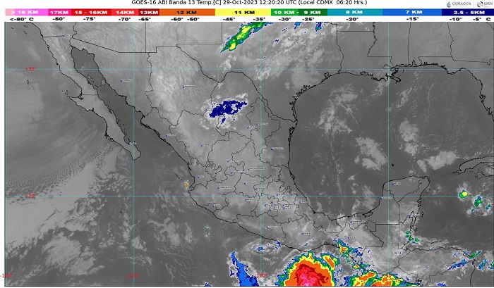 Respecto a las temperaturas, el estado de Colima alcanzaría este domingo máximas de 30 a 35 grados Celsius, al igual que Jalisco, Michoacán, Guerrero, Baja California Sur, Sonora, Sinaloa, Chihuahua, Durango, Coahuila, Nuevo León, San Luis Potosí, Nayarit, Oaxaca, Chiapas, Tamaulipas, Veracruz, Tabasco y Quintana Roo.