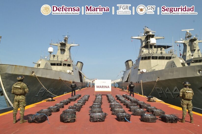 En el marco de la Estrategia Nacional de Seguridad, en días pasados, durante operaciones marítimas encabezadas por elementos de la Secretaría de Marina (Semar) a través de la Armada de México en funciones de Guardia Costera, en coordinación con la Secretaría de la Defensa Nacional (Defensa), Fiscalía General de la República (FGR), Guardia Nacional (GN) y Secretaría de Seguridad y Protección Ciudadana (SSPC), durante dos eventos diferentes, se llevó a cabo el aseguramiento de alrededor de 4.2 toneladas de presunta cocaína frente a costas de Guerrero.