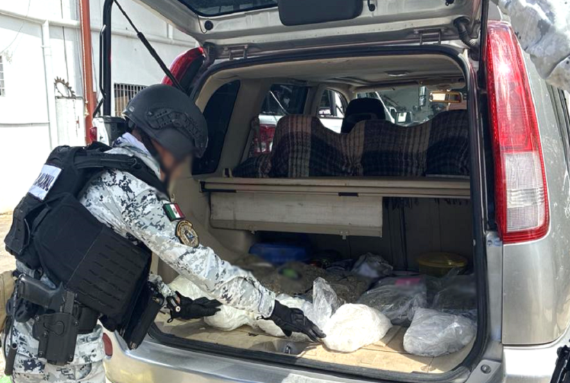 - En Chihuahua, elementos de GN, Ejército Mexicano y Fiscalía Estatal catearon un inmueble y aseguraron 300 kilos de marihuana. El costo por la droga asegura es de 1.1 millones de pesos