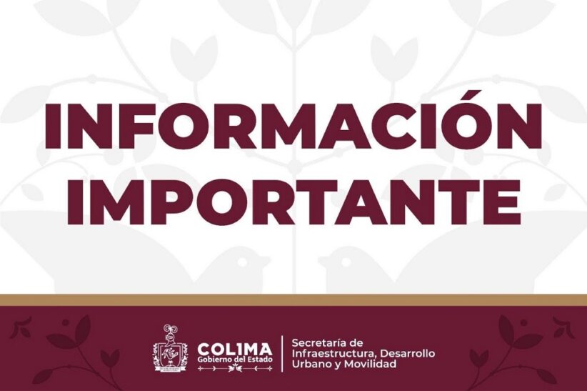 La Secretaría de Infraestructura, Desarrollo Urbano y Movilidad (Seidum) del Gobierno del Estado de Colima informa que este lunes a partir de las 10:30 de la mañana, se llevará a cabo el desmontaje de una señal vial sobre el libramiento Ejército Mexicano, en el sentido de Colima a Manzanillo, a la altura del kilómetro 6+640. Posteriormente, dicha señal será montada en su nueva ubicación, en el kilómetro 6+300.