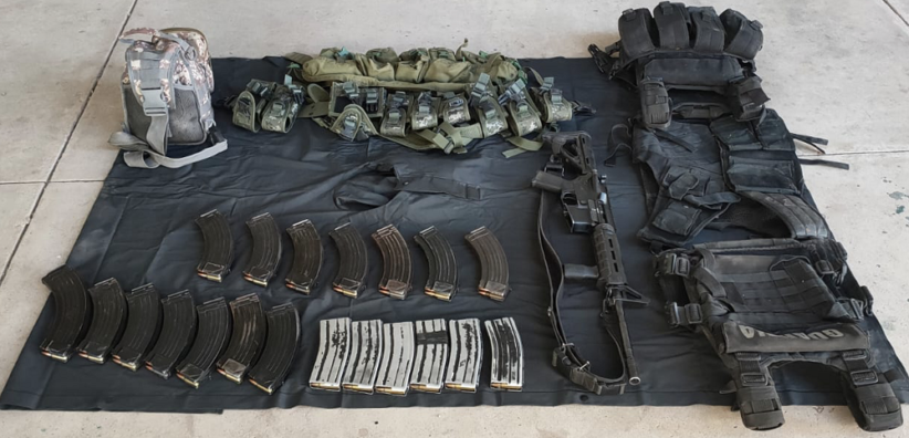 -En Buenavista, elementos de GN, Ejército Mexicano y Policía Estatal aseguraron un arma larga, 20 cargadores, cartuchos y equipo táctico.
