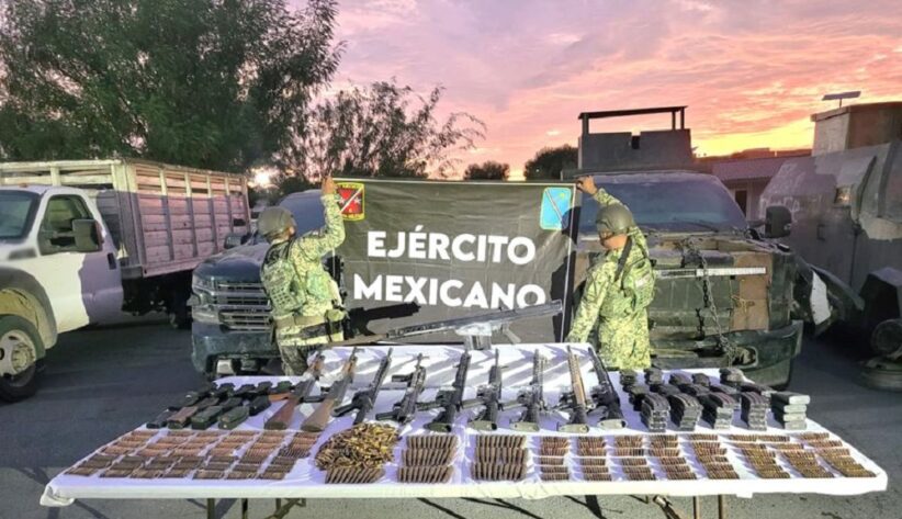 -En Camargo, al realizar labores de reconocimiento aéreo y terrestre sobre el poblado El Sabinito, elementos del Ejército Mexicano, aseguraron un fusil Barrett, nueve armas largas, 78 cargadores, 1,410 cartuchos, 32 artefactos explosivos improvisados y cinco vehículos, tres con blindaje artesanal y dos con reporte de robo.