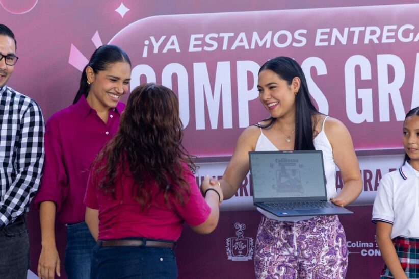 La gobernadora de Colima, Indira Vizcaíno Silva, prosigue con la entrega del programa #ColiBecas Computadoras y este martes estuvo en la unidad deportiva ‘María Villa Montero’ de Comala, donde entregó simbólicamente las primeras 680 laptops gratuitas a estudiantes de secundaria, de nivel licenciatura y docentes, de las más de 21 mil computadoras que se otorgarán en todo el estado, con una inversión superior a los 174 millones de pesos.