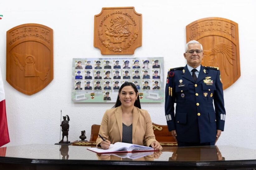 Este jueves, por invitación del Colegio de la Defensa Nacional, la gobernadora de Colima, Indira Vizcaíno Silva, dio una conferencia sobre la política de desarrollo y seguridad que se aplica en esta entidad, ante el personal discente de la Maestría en Seguridad Nacional que se imparte en dicha institución educativa.