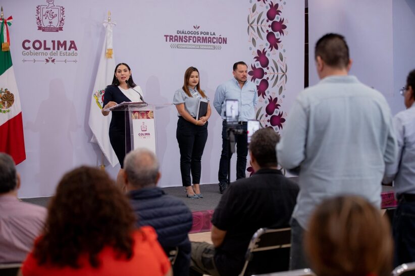 La gobernadora de Colima, Indira Vizcaíno Silva, acompañada por la secretaria de Infraestructura, Desarrollo Urbano y Movilidad (Seidum), Marisol Neri León, y el director general del Centro del Secretaría de Infraestructura, Comunicaciones y Transportes (SICT), Christoper Enrique Lucas Ochoa, informó en Diálogos por la Transformación detalles de construcción del paso superior ferroviario Arco Sur (en la colonia Prados del Sur) del municipio de Colima, que tendrá una inversión superior a 476.6 millones de pesos y la construcción de esta obra durará un año.