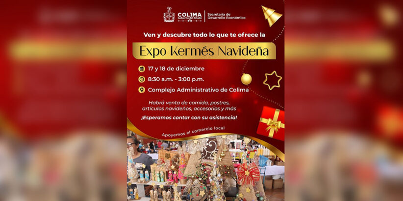 La ‘Expo Kermés Navideña’ se llevará a cabo el miércoles 17 y jueves 18 de diciembre, de 8:30 de la mañana a 3:00 de la tarde en la explanada del Complejo Administrativo de Colima. Durante ambos días, las y los asistentes podrán encontrar una amplia variedad de productos: comida, postres, artesanías, artículos navideños, accesorios y más, elaborados por colimenses.