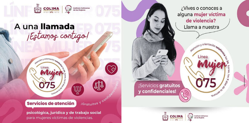 El Gobierno del Estado de Colima, a través del Instituto Colimense de las Mujeres (ICM), informa que la Línea Mujer 075 continúa a disposición las 24 horas durante los siete días de la semana en todo el año, brindando de manera gratuita asesoría legal y emocional a mujeres en situación de violencia.