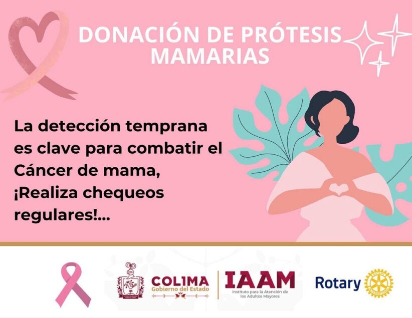 El Instituto para la Atención de los Adultos Mayores (IAAM) del Gobierno del Estado de Colima, en coordinación con el Club Rotario Internacional, entregará prótesis mamarias para las mujeres luchadoras del cáncer de mama.