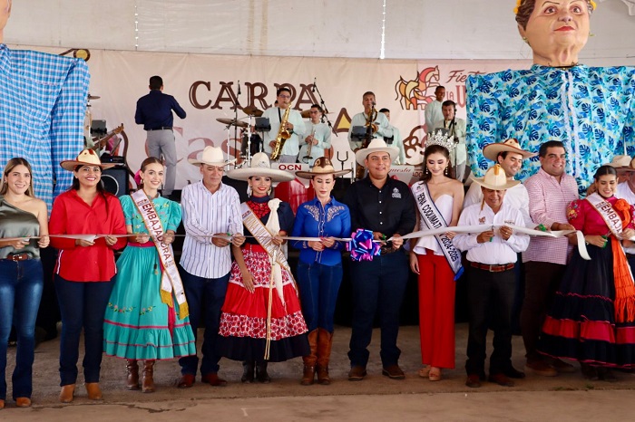 En la Carpa Casino del Recinto Ferial, la Alcaldesa realizó el corte inaugural de las actividades festivas, acompañada por la Reina de los Festejos Charro Taurinos, Malinalli I; Rodolfo Aguilar, Director del Instituto de Fomento de Ferias y Exposiciones; Petronilo Vázquez, Director del Instituto de Festejos Charro Taurinos y Exposiciones de Villa de Álvarez, y los presidentes de Armería y Coquimatlán, Cruz Méndez y Luis Gerardo García, respectivamente, quienes ofrecieron el Recibimiento este sábado.