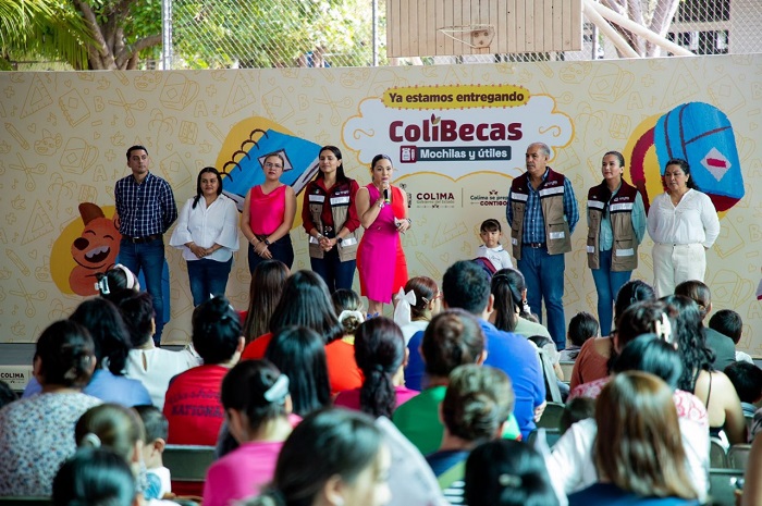 La gobernadora de Colima, Indira Vizcaíno Silva, cierra esta semana temática con la entrega de ColiBecas Mochilas y Útiles, beneficiando este viernes a casi mil estudiantes de preescolares y primarias públicas, en dos eventos masivos en la secundaria ‘Benjamín Fuentes González’ en Villa de Álvarez y más tarde en la primaria ‘Donaciano Niestas’ en El Trapiche, en Cuauhtémoc.