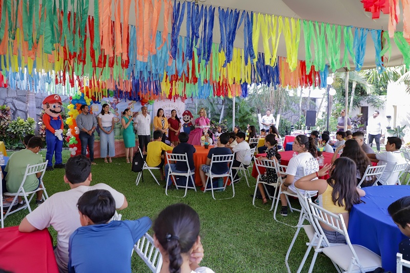 La gobernadora de Colima estuvo acompañada por Viridiana Valencia Vargas, delegada de Programas para el Bienestar; Adolfo Núñez González, secretario de Educación y Cultura; Arnoldo Vizcaíno Silva, presidente del Patronato DIF y Voluntariado Estatal; Teresa de Jesús Ramírez, titular de la Oficina de Enlace Educativo en el estado y María del Rosario Silva Verduzco, subsecretaria de Educación.