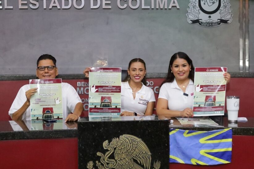 En rueda de prensa, la diputada Sharon Díaz, así como la presidenta de la comisión de Estudios Legislativos y Puntos Constitucionales, diputada Dulce Huerta Araiza y el titular del Instituto Colimense para la Discapacidad (INCODIS), el Mtro. David Monroy, anunciaron el Foro de consulta para la Reforma a la Constitución local en materia de Lengua de Señas Mexicana, que se llevará a cabo el próximo martes 08 de abril a las 5:00 pm, en el Congreso del Estado de Colima, con entrada libre para cualquier persona interesada.
