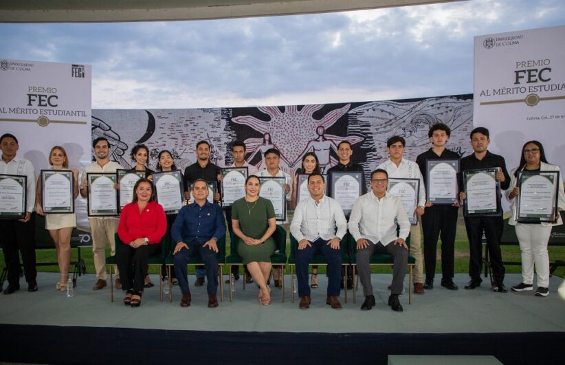 La gobernadora Indira Vizcaíno Silva asistió a la entrega del Premio de la Federación de Estudiantes Colimenses (FEC) al Mérito Estudiantil 2025, la tarde de este martes en la explanada de la Facultad de Derecho de la Universidad de Colima; la mandataria dijo a las y los jóvenes galardonados que cada paso que dan, influye en ellos y en la sociedad.