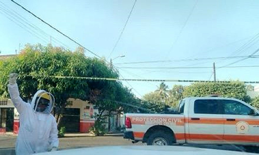 Protección Civil municipal Colima, controla enjambre de abejas en la calle Doctor Miguel Galindo