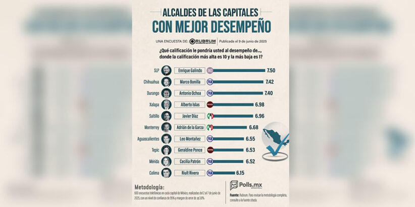 De acuerdo con la empresa demoscópica RUBRUM, el panista que encabeza el municipio capitalino tiene una evaluación de 6.1, lo que implica que 6 de cada 10 capitalinos reconocen su trabajo.