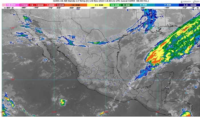 De acuerdo con el Servicio Meteorológico Nacional (SMN) La masa de aire fríoasociada al frente modificará sus características térmicas, permitiendo el gradual incremento de las temperaturas máximas en gran parte del país, por lo que en Colima se prevén máximas entre 30 y 35 grados.