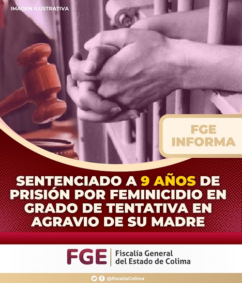 La Fiscalía General del Estado (FGE) obtuvo una sentencia condenatoria en contra de Juan “N” por su responsabilidad penal en el delito de feminicidio en grado de tentativa, cometido en agravio de su madre.
