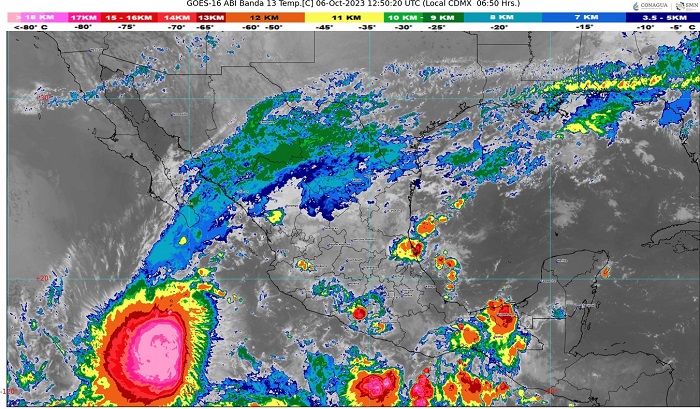 Hoy viernes 6 de octubre, la tormenta tropical ‘Lidia’ continuará desplazándose al sur de las costas de Baja California Sur, su circulación favorecerá el ingreso de humedad hacia el occidente del territorio nacional, reforzando la probabilidad de lluvias en Colima, Sinaloa, Nayarit, Jalisco y Michoacán.