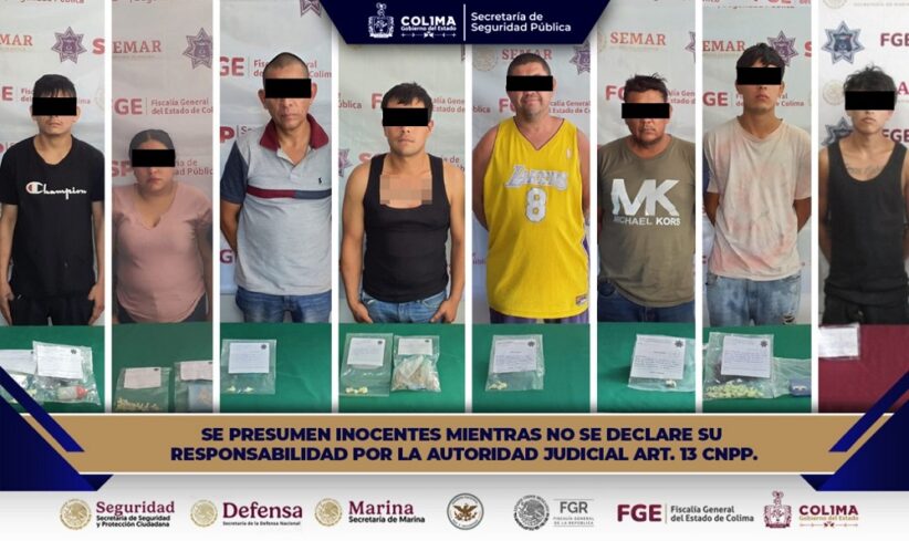 La Secretaría de Seguridad Pública (SSP) del Gobierno del Estado de Colima informa que, como resultado de los patrullajes preventivos, personal de la Policía Estatal Preventiva (PEP), en coordinación con elementos de la Secretaría de Marina Armada de México (Semar), detuvieron a ocho personas en distintos operativos en los municipios de Tecomán y Colima, por su presunta responsabilidad en delitos contra la salud.