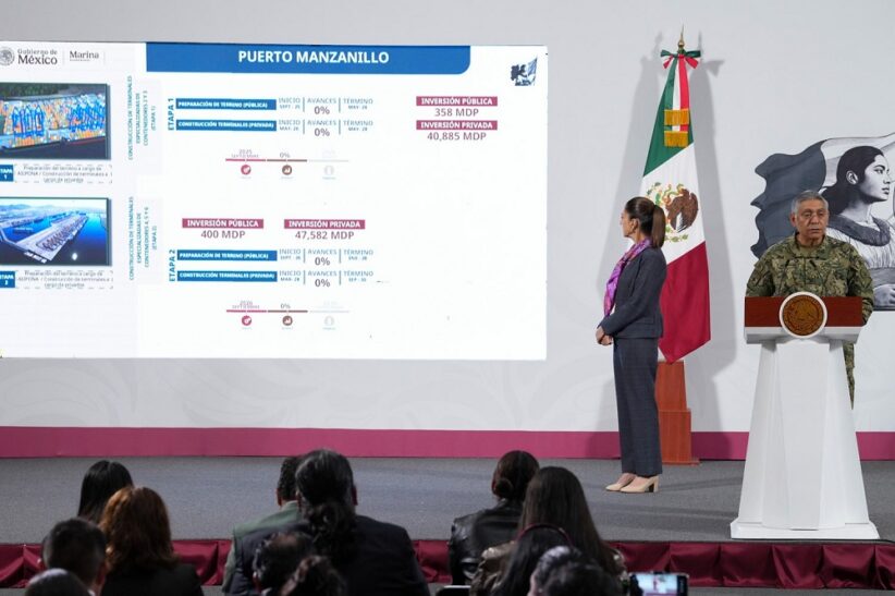 Morales Ángeles reportó avances del desarrollo del Puerto de Manzanillo durante la conferencia matutina de la presidenta Claudia Sheinbaum Pardo este miércoles 23 de julio de 2025.