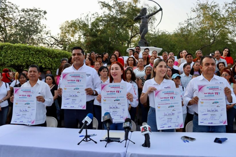 Villa de Álvarez, Col. (Agencias).- Acompañada por representantes de más de 100 colonias de Villa de Álvarez, la candidata de la Coalición Fuerza y Corazón por Colima a la alcaldía, Tey Gutiérrez Andrade, firmó el acuerdo ciudadano “Por Amor a la Villa” en su vertiente La Villa por Ti, el cual la compromete a consolidar a Villa de Álvarez como un modelo de calidad estatal en la prestación de los servicios públicos.