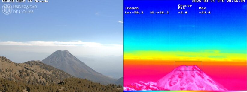 Del viernes 28 de marzo al jueves 3 de abril, el Centro Universitario de Estudios Vulcanológicos (CUEV) de la Universidad de Colima contabilizó de forma manual siete sismos de alta frecuencia y ocho derrumbes, ninguno relacionado con actividad volcánica, descartando explosiones y/o anomalías térmicas asociadas con la actividad fumarólica.