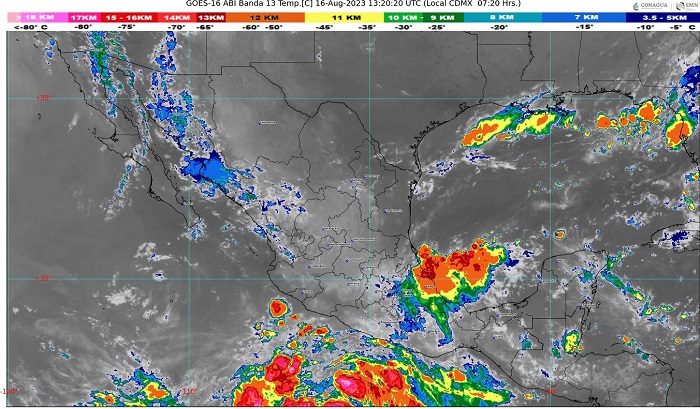 Hoy, una zona de baja presión con potencial para desarrollo ciclónico localizada al sur de las costas de Guerrero, asociada con la onda tropical número 22, mantendrá el potencial de lluvias puntuales intensas en Oaxaca, Guerrero y Michoacán y puntuales muy fuertes en Colima, Jalisco y Nayarit.
